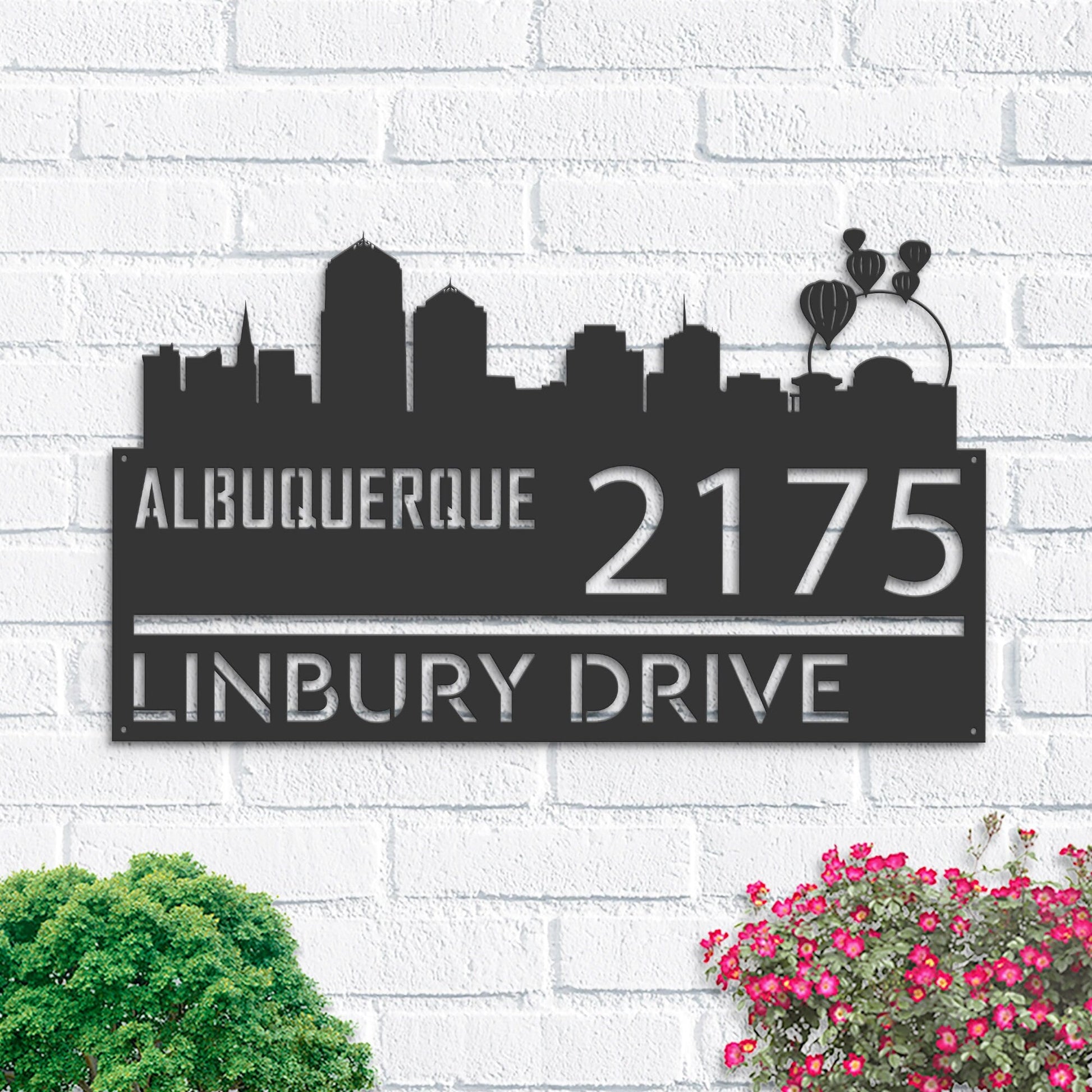 Personalized Albuquerque city skyline Metal Address Sign Hanging Address Plaque house number Yard Outdoor Sign Garden Stake