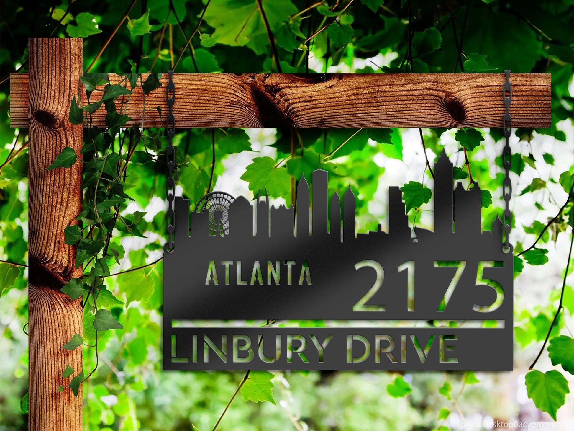 Personalized Atlanta city skyline Metal Address Sign Hanging Address Plaque house number Yard Outdoor Sign Garden Stake